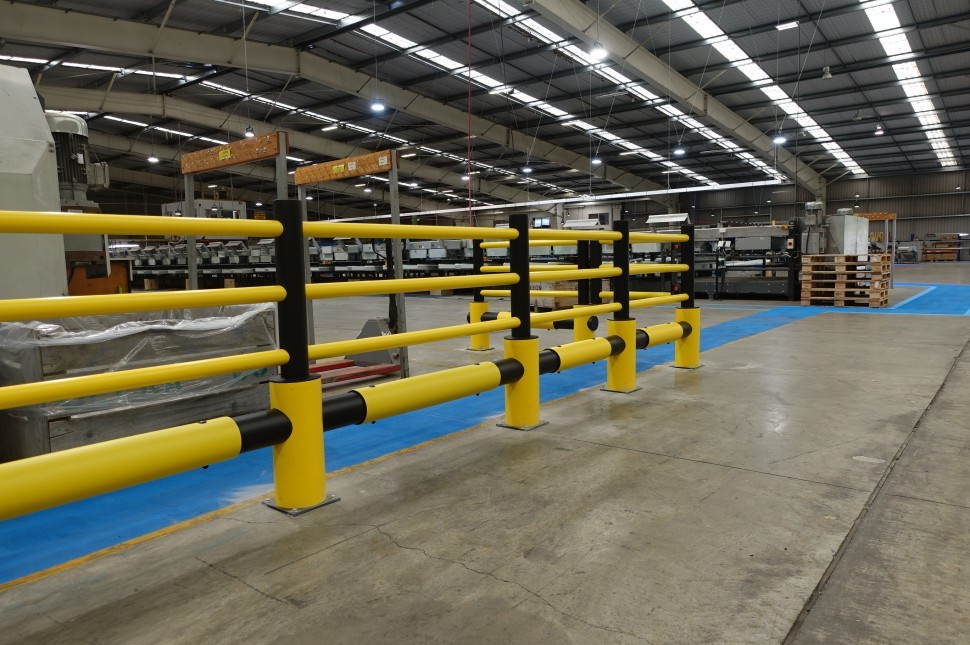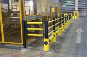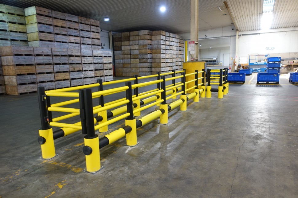 Existing steel barrier systems required expensive maintenance due to the impact of vehicle and material handling equipment (MHE). A need for strong, physical barriers that separate pedestrians and MHE.